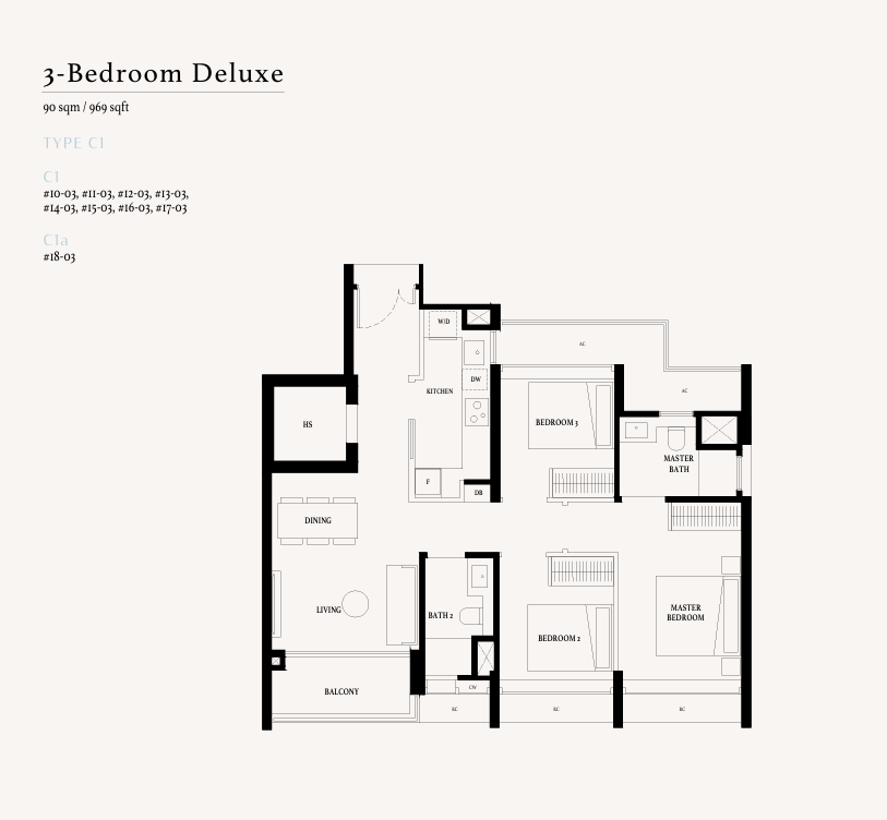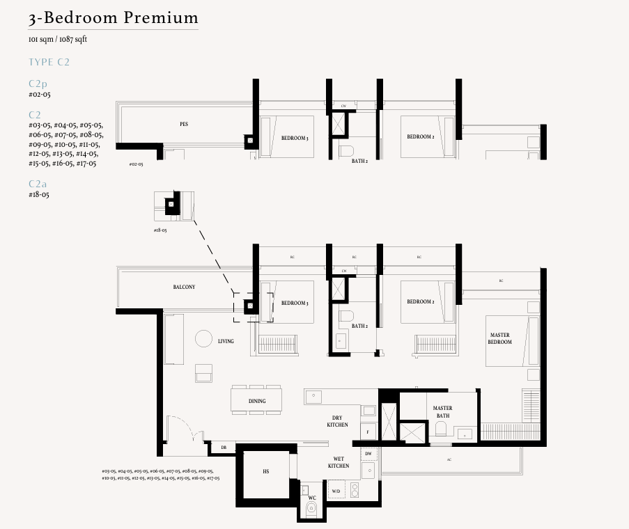 | 3 Bedroom Premium | 18 | 1,087 - 1,195 | |