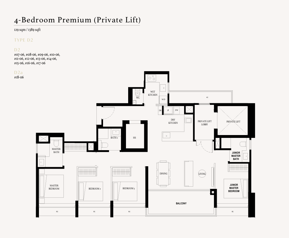 | 4 Bedroom Premium (Private Lift) | 13 | 1,389 - 1,615 | |